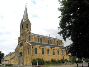 Cet édifice a été construit au XIXe siècle sur l'emplacement d'une ancienne église ainsi que d'un vieux cimetière. Les parements se caractérisent par un grès jaune.